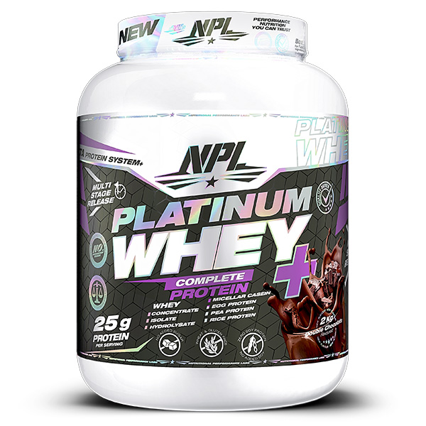 NPL Platinum Whey Protein Plus is a blend of whey protein isolate, concentrate and hydrolysate as well as egg white protein, micellar casein, pea, and rice proteins with no added sugar. The stage-release nature of these protein sources allows for continuous amino acid uptake and improved recovery.