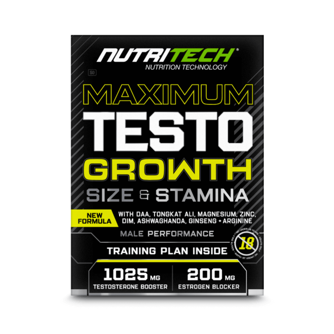 Nutritech Testogrowth Maximum has been formulated as a premium anabolic amplifier. A single serving of TESTOGROWTH delivers 500mg of D-Aspartic Acid, 400mg of Tongkat Ali, 100mg of Magnesium, and 25mg of Zinc to boost testosterone, regulate estrogen, and elevate male performance. TESTOGROWTH is designed to provide superior testosterone support and estrogen regulation, leading to improved training performance and muscle growth, while helping you effectively manage stress, promote restful sleep, and accelerate muscle recovery.